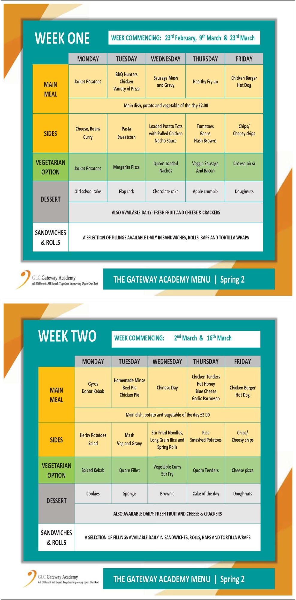 Academy Lunch Menu